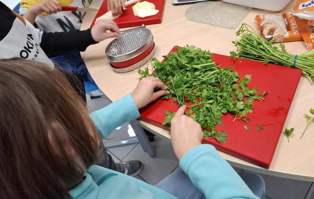 Bildunterzeile: Kochaktion der Grünen Küche bei der Grundschule St. Peter