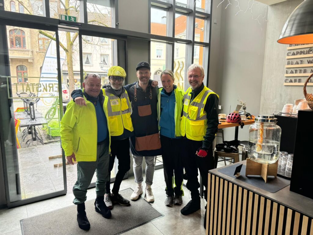 64 kg Schokolade wurden von Amsterdam über ca. 710 km nach Andernach mit Fahrrädern transportiert und den Weltläden aus Andernach und der Region über-geben. Sabine Schmitz (Weltladen) und Rüdiger Schäfer (Ehrenamtsbeauftragter) begrüßten die Radler und waren froh, dass sie wohlbehalten zurückgekommen sind. Sie dankten den Vieren für ihren Einsatz. Dies sei eine einzigartige Werbung für Andernach.