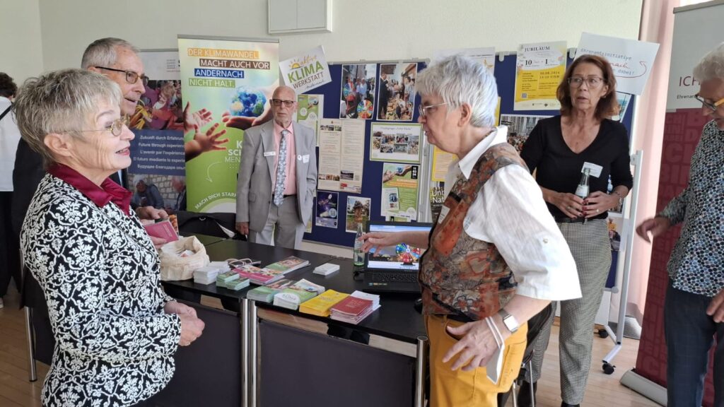Der Stand der Ehrenamtsinitiative der Stadt Andernach fand reges Interesse – u.a. von Prof. Klaus Helling, dem Dekan des Umwelt-Campus Birkenfeld und stellvertretenden Vorsitzenden des Zukunftsrat Nachhaltige Entwicklung Rheinland-Pfalz. – Gute Perspektiven: Der Dialog und Austausch sollen in Birkenfeld oder/und in Andernach fortgesetzt werden. Auch plant das Bundesnetzwerk Bürgerschaftliches Engagement (BBE) rund um das Klimaschutzthema Regionalkonferenzen durchzuführen mit Beteiligung u.a. der Andernacher Klima-Werkstatt.