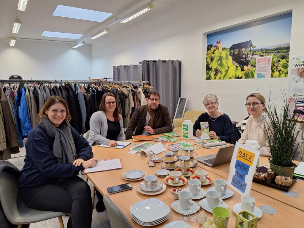 v.l.n.r.: Frau Sandra Becker, Leiterin des Umdenken, Frau Manon Schriemer, Assistentin der Geschäftsführung, Herr Christian Luxem, Geschäftsführer der Perspektive Andernach, Corinna Becker Kümmerin der PG Kreislaufwirtschaft der Klimawerkstatt Andernach, Frau Marta Kimmes, Projektmanagement Außendienst der Refood GmbH&Co KG
