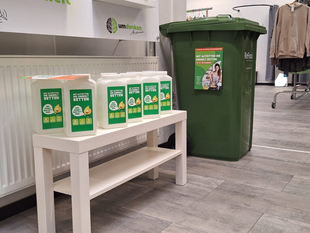 Annahme von gebrauchtem oder verdorbenen Speiseöl-fett im Umdenken Laden, Am Stadtgraben 47