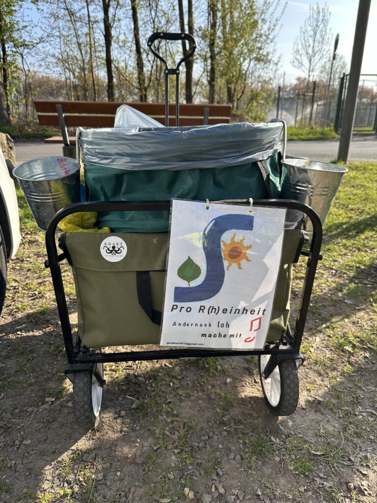 Bei herrlichem Frühlingswetter fand im April eine besondere Müllsammelaktion der Projektgruppe Pro R(h)einheit statt. Dank des Kontakts zu Mahnaz Lübke vom Integrationsnetzwerk Andernach waren an diesem Tag auch Flüchtlinge aus Syrien und dem Iran aktiv mit dabei.