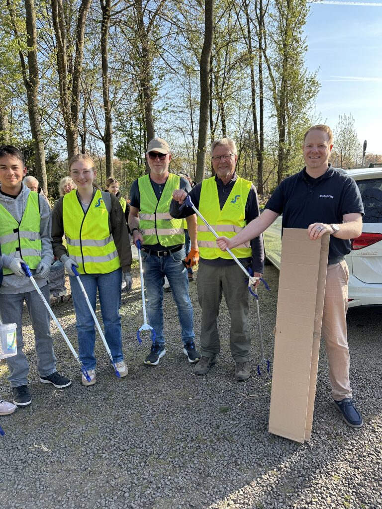 Zudem konnte sich die Ehrenamtsgruppe Pro R(h)einheit an diesem Tag über weitere Unterstützung freuen. Das Koblenzer Unternehmen Axians IT Business Solutions GmbH spendete zwölf Müllgreifer – ein unverzichtbares Werkzeug für die fleißigen Müllsammler:innen. Heiko Augustin übergab diese stellvertretend für die Fa. Axians an Werner Weidmann, den Kümmerer der Pro R(h)einheit.