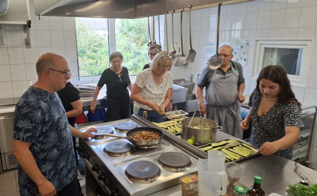 Ein besonderer Kochabend fand im August in der Küche der Andernacher Perspektive statt: Die Projektgruppe „Grüne Küche“ der Klima-Werkstatt empfing Besuch aus den Niederlanden. Die holländische Fotografin und Journalistin Vivian Keulards reist im Auftrag der EU in mehrere europäische Länder, um Menschen zu porträtieren, die sich für eine fleischlose Ernährung starkmachen. Stationen ihrer Reise waren unter anderem ein Teenager in den Niederlanden, der seine Freunde von vegetarischen Gerichten überzeugen möchte, eine junge Familie in Dänemark – und nun auch die engagierte Kochgruppe der Klima-Werkstatt in Andernach.